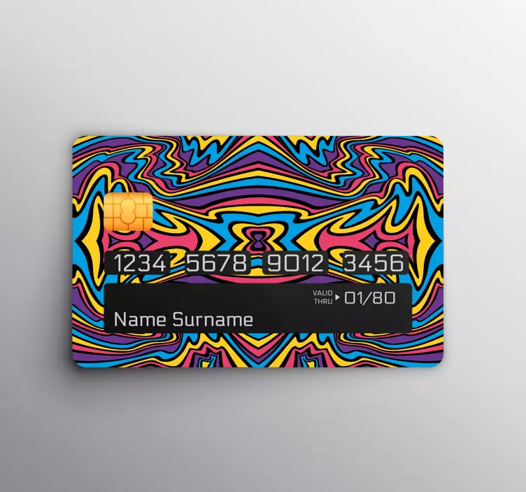 Živahen abstraktni element nalepka kreditne kartice je idealna izbira za vse, ki želijo popestriti svoj vsakdan. S to nalepko ne le zaščitite svojo kreditno kartico, ampak ji tudi dodate edinstven stil, ki bo zagotovo pritegnil poglede. Uporabite jo kot način izražanja svoje osebnosti in uživajte v barvitih vzorcih, ki obogatijo vašo izkušnjo pri plačevanju!