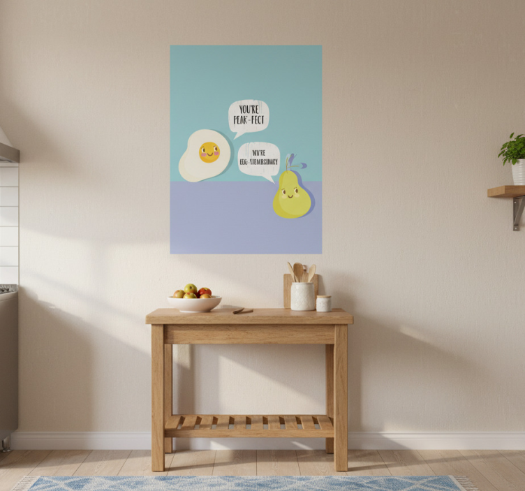 V vaši kuhinji je lahko vsak detajl pomemben, zato je Egg and pear pun plakat za kuhinjo prava izbira za popestritev vašega prostora. Ta plakat kuhinja ne le da očara s svojim dizajnom, ampak tudi spodbuja kreativnost in prijetno vzdušje. Vsakič, ko boste vstopili v kuhinjo, vas bo navdihnil s svežimi idejami za kuhanje in druženje. Ne dovolite, da vaša kuhinja ostane brez osebnosti – dodajte ji to čudovito umetniško delo, ki bo zagotovo pritegnilo pozornost!