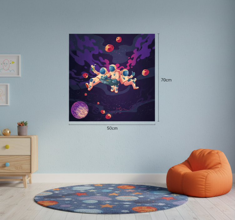 Namestitev našega Jamming cartoon astronauts plakata za otroško sobo je preprosta in hitra! Priporočamo, da uporabite dvostranski lepilni trak na zadnji strani plakata za otroško sobo. Tako bo plakat trdno držal na steni. Preprosto prilepite trakove na zadnjo stran in vsak trak držite 10 sekund. Alternativno lahko uporabite tudi thumbtacks ali blu-tack, ki omogočajo enostavno pritrditev in odstranitev plakata brez poškodb stene. Uživajte v dekoraciji!