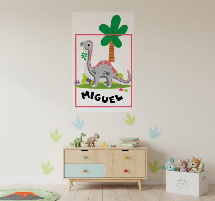 Če iščete način, kako obogatiti prostor vaše otroške sobe, je Siv dolg vrat dinozaver plakat za otroško sobo prava izbira. Plakat otroška soba je idealen za spodbujanje otroške domišljije in ustvarjalnosti. S tem dinozavrom na steni lahko otroci raziskujejo svet dinozavrov, kar je lahko odlična priložnost za učenje in igro. Vedno znova bo navdihoval radovednost in srečo vaših malčkov, hkrati pa bo prostor napolnil z veselim in igrivim vzdušjem!