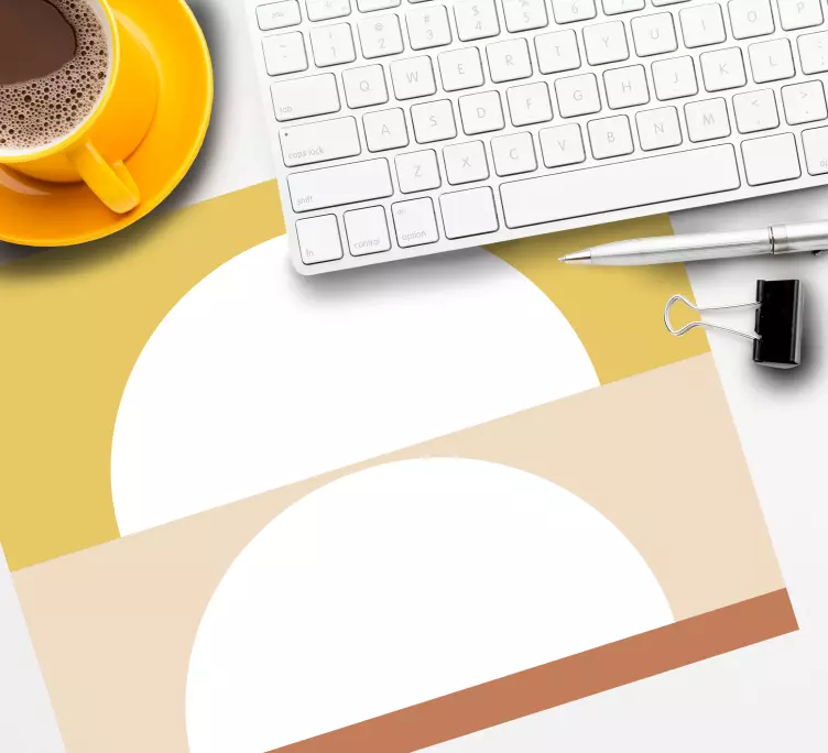 Uživajte v edinstvenem dizajnu Geometric circle shapes podloga za miško z pošastmi, ki združuje minimalistične geometrijske oblike in pastelne barve. Ta moderna podloga za miško prinaša svež dah umetnosti v vašo pisarno ali delovni prostor. Nežno oblikovani polkrogi se prepletajo v vabljivi vzorec, ki bo zagotovo pritegnil pozornost in dodal pridih stila vašemu delovnem okolju.