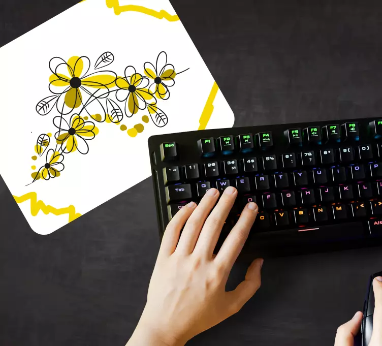 Ta oblika ima rumeno ilustracijo nekaterih cvetov na belem ozadju. Naš originalni podstavek za miško je ročno izdelan iz visokokakovostnih materialov, kar zagotavlja dolgotrajen in zanesljiv izdelek. Poleg tega ga je enostavno očistiti, tako da bo vedno videti popoln.