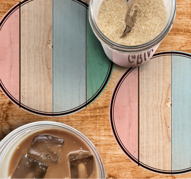 Odkrijte čarobnost Colorful wooden planks podstavkov z teksturo, ki prinašajo toplino in edinstvenost v vaš dom. Njihov čudovit dizajn z učinki lesa in pastelnih odtenkih je popoln za vsak prostor. Vsak podstavek je okrogle oblike in z značilno teksturo, ki poskrbi za prijetno vzdušje. Vzorec na površini poskrbi, da so ti leseni podstavki pravi pripomoček za estetsko oblikovanje vaše mize.