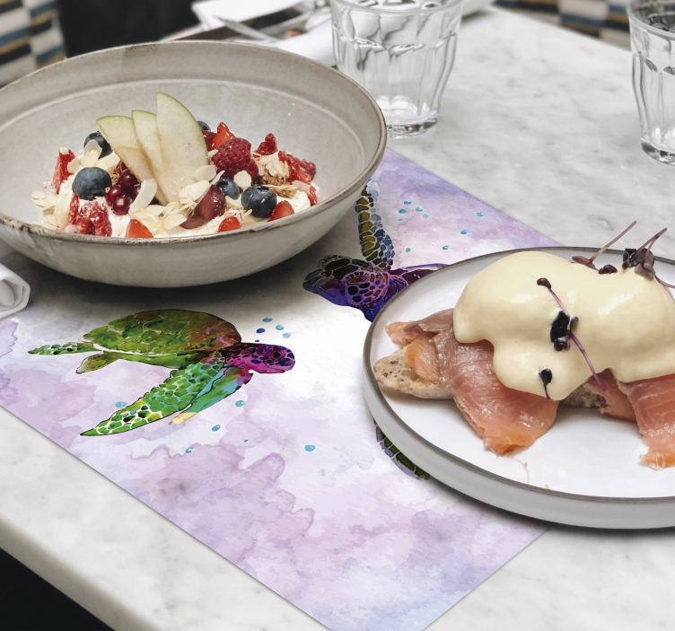 Za ohranjanje Colorful turtle illustration izvirna jedilna podloga v odličnem stanju, jo enostavno obrišite s vlažno krpo. Ta unikatna podloga za jedilno mizo je zasnovana za hitro čiščenje in odpornost na madeže, kar pomeni, da boste brez težav obdržali njen čudovit videz. Uživajte v brezskrbnem obroku in si zagotovite dolgotrajno uporabo!