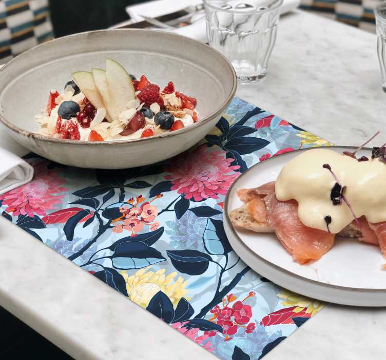 Odkrijte čarobnost in eleganco našega Floral pattern elegance izvirna jedilna podloga, ki prinaša živahne barve in očarljive cvetlične motive v vašo jedilnico. Ta edinstvena jedilna podloga združuje teksturo in barvitost, kar jo naredi za pravo umetniško delo. Njena cvetlična zasnova s čudovitimi rožami in bogatimi detajli bo popestrila vsako mizo, hkrati pa ustvarila prijetno in toplo vzdušje za vaše goste.