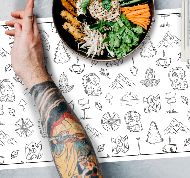 Prijetno si oglejte čudovit videz te namizne podloge, ki je primerna tako za restavracije kot tudi za druge jedilnice. Izrazite svojo pustolovsko stran s to ilustracijo za kampiranje. Ta izdelek je vrhunske kakovosti in pralen. Izbirajte med različnimi možnostmi in naročite svojo danes. Obiščite tudi našo spletno stran, kjer lahko odkrijete našo drugo zbirko.