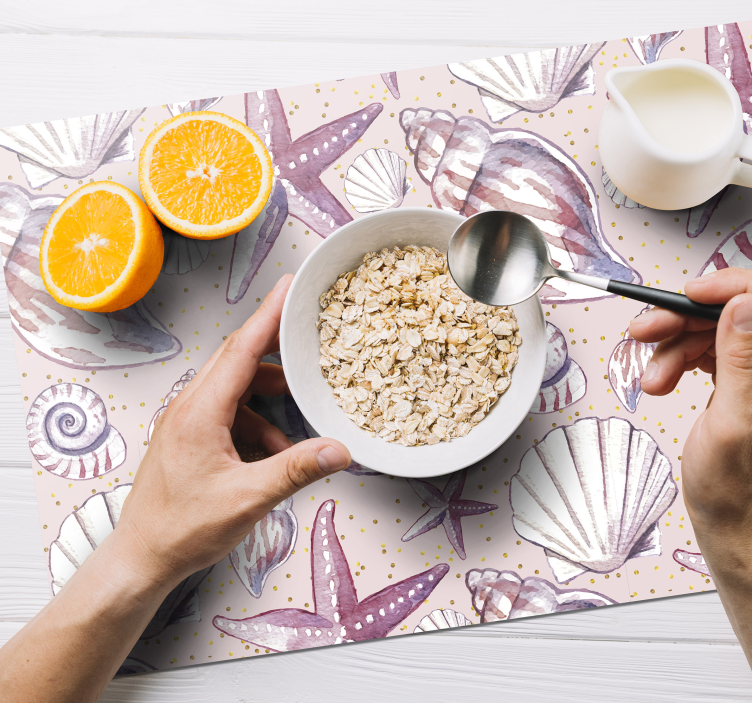 Uživajte v edinstvenem dizajnu Shell print motif teksturni pogrinjek, ki prinaša morsko atmosfero naravnih elementov v vaš dom. Ta čudovit pogrinjek združuje nežne barve školjk, morskih zvezd in peska, kar ustvarja pomirjujoč ambient, ki vas popelje naravnost na obalo oceana. Vsak kos je skrbno oblikovan, da odraža lepoto morskega življenja in vam omogoča, da uživate v naravi kar v svojem domu.
