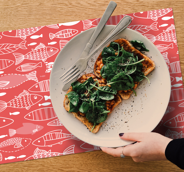 Kot pravijo, je v morju veliko več rib.. Tista preproga za mizo s pravokotnikom z ribjim vzorcem je neverjeten dodatek, ki bo vašo mizo spremenil v čudovit prostor. Rdeči vinilni placemat bo videti neverjetno na beli, črni ali celo na leseni mizi. Izberite velikost, ki jo potrebujete, in količino ribje ploščice ter jo zdaj kupite na spletu z naše spletne strani! Ker je narejen iz visoko kakovostnega vinila, vas ne bo odklonil - je antialergičen in ga lahko večkrat očistite s krpo in malo vode.