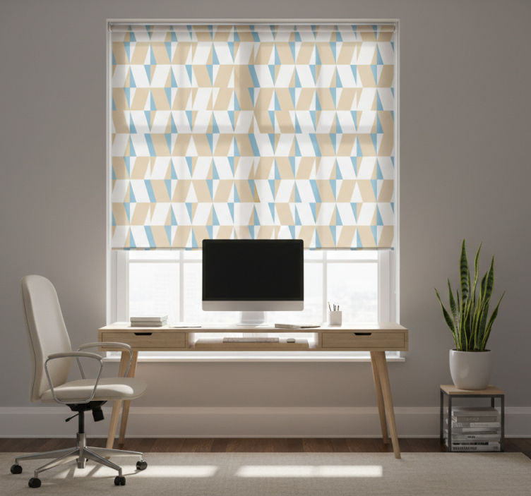 S Geometric minimalistic shapes rolo zavesa za domačo pisarno boste ustvarili prostor, ki vas bo navdihoval. Ta izdelek ni le dekorativni element, temveč tudi praktična rešitev za vašo pisarno. Njihova sposobnost uravnavanja sobne temperature in zaščite pred zaslepljujočim soncem bo izboljšala vaše delovno okolje. Poleg tega enostavna montaža in demontaža omogočata hitro čiščenje ter ohranjanje vaše pisarne urejene in privlačne. Ne zamudite priložnosti, da obogatite svoj prostor s temi čudovitimi zavesami!