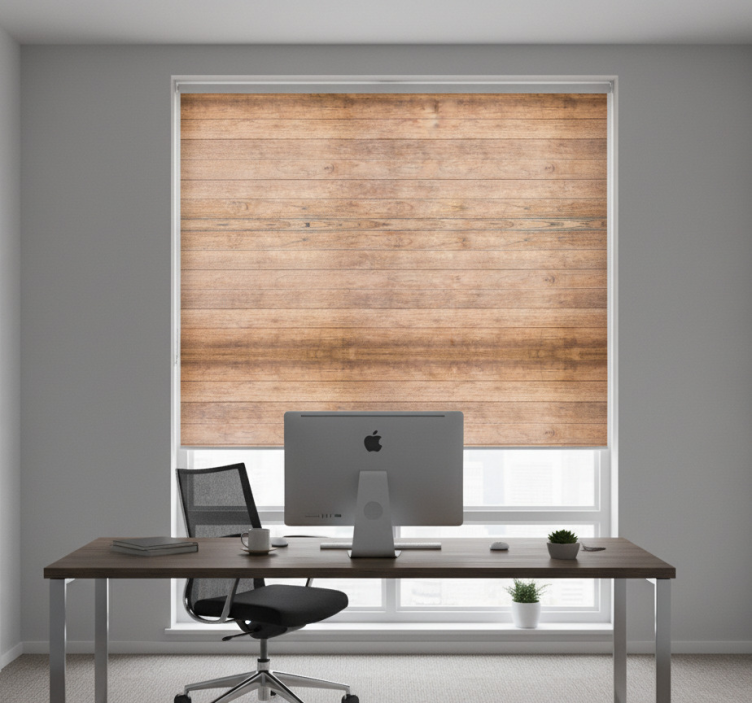Horizontal rustic wooden planks rolo zavese za pisarno