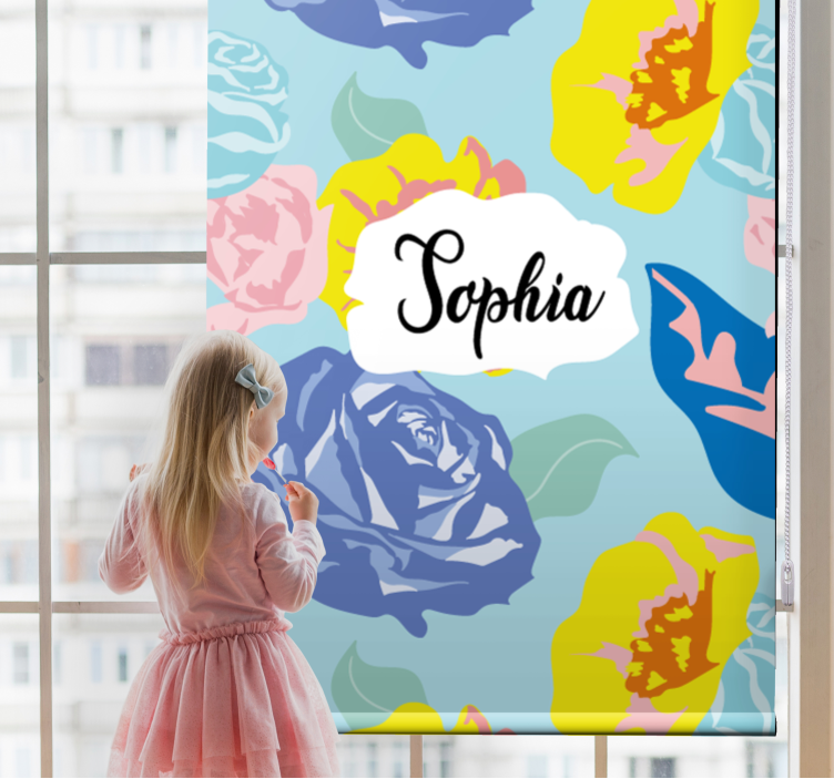 Naša oblika vključuje več rož v sodobnih barvah, ki bodo oživile vaš prostor. Središče je belo, z možnostjo prilagajanja imena. To vam bo pomagalo vnesti zasebnost in senco v vaše sobe.