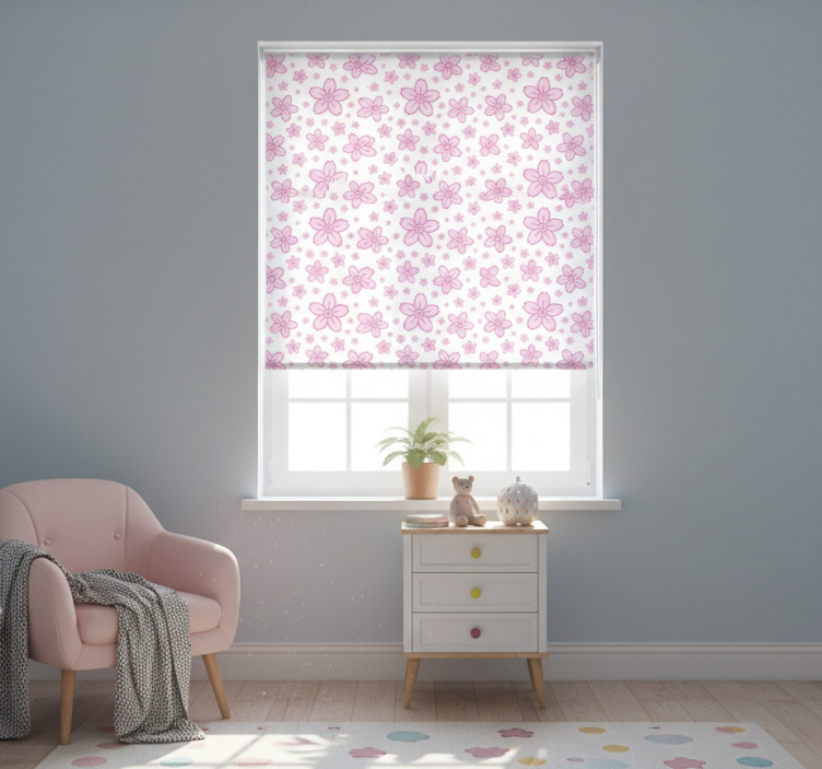 Otroška rolo senčila rožice v roza na belem ozadju