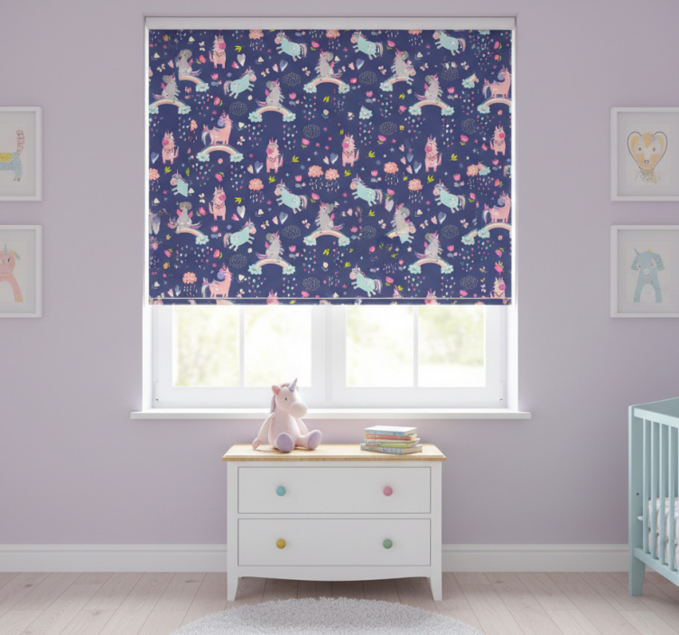 Otroška rolo senčila v pisanih enorogih z mavričnim vzorcem