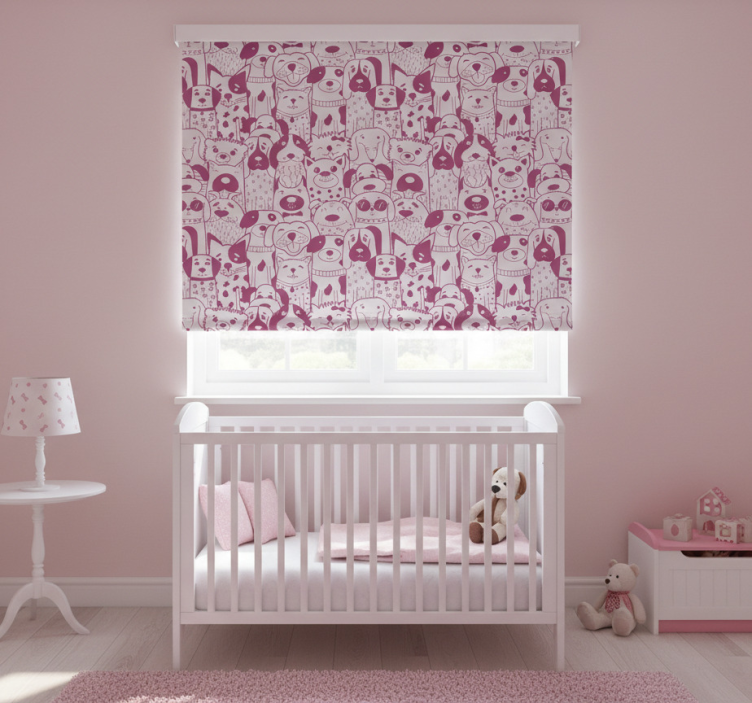 Otroška rolo senčila z risbo roza psov z dlako