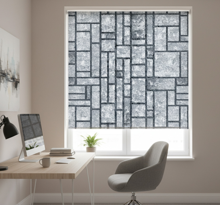 Rolo zavesa za domačo pisarno sivi betonski bloki