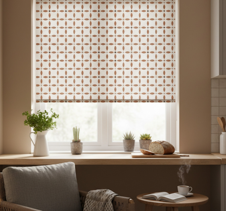 Rolo zavesa za kuhinjo bež geometrijski motiv