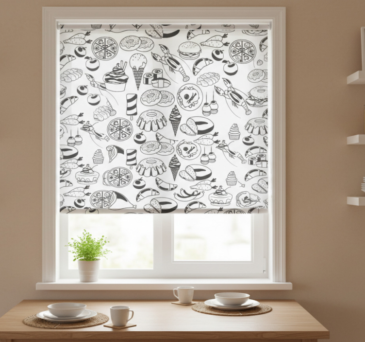 Rolo zavesa za kuhinjo črno-bela hrana vzorec