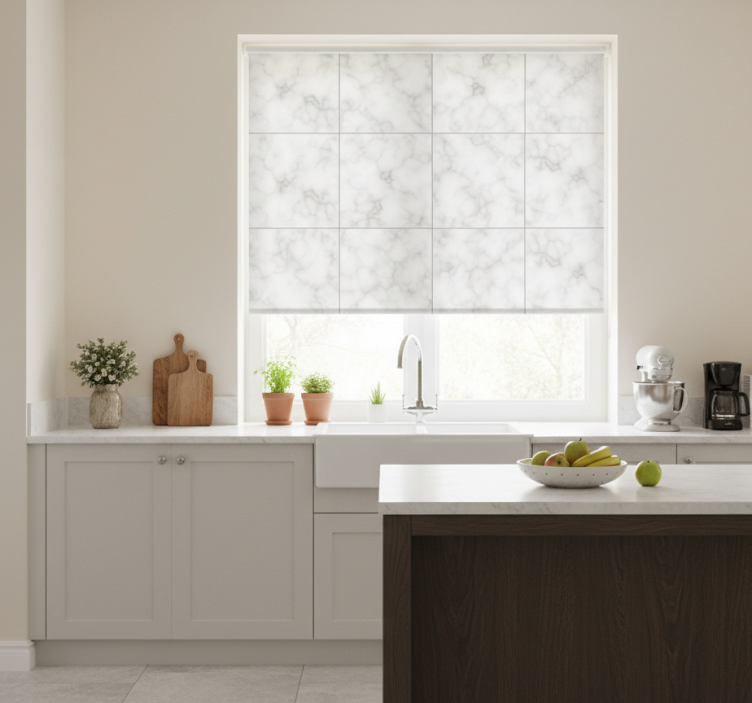 Rolo zavesa za kuhinjo kvadratna bela marmorna ploščica