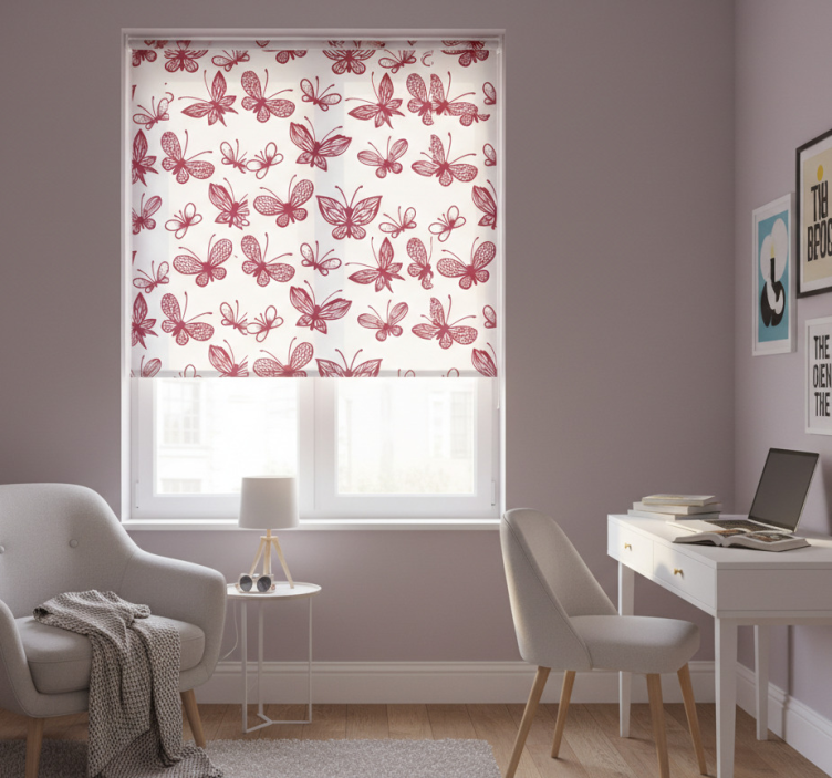 Rolo zavesa za najstnika eleganten rdeč metuljčki vzorec