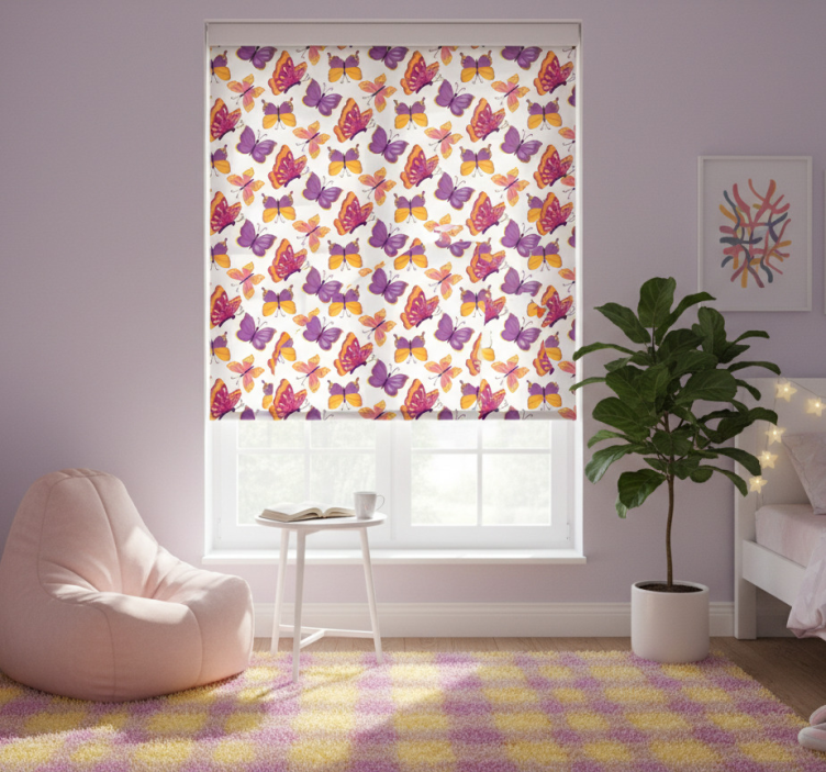 Rolo zavesa za najstnika z vzorcem metuljev v rumeni in roza