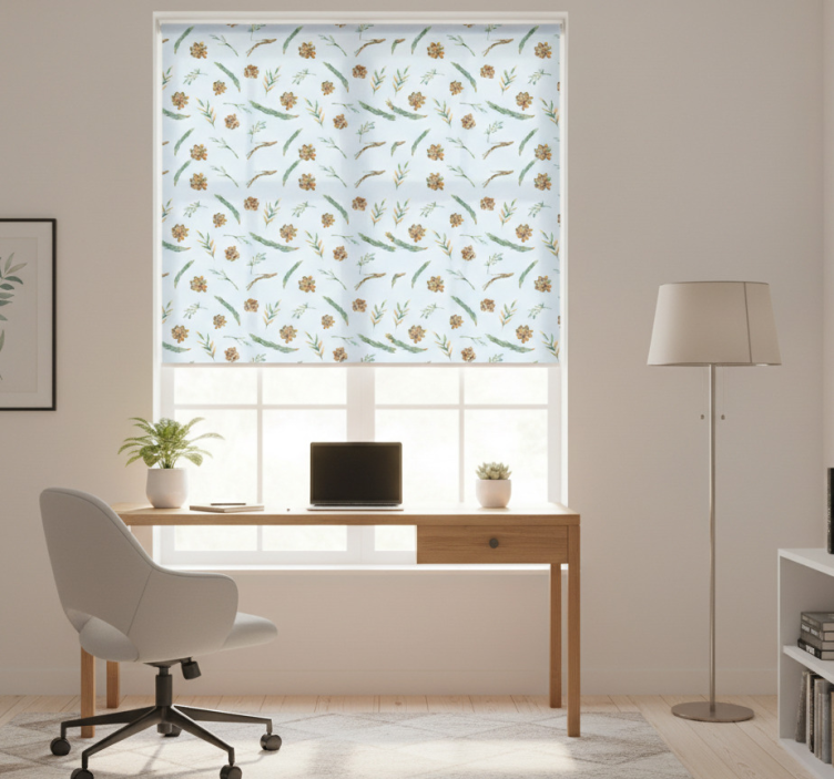 Rolo zavesa za pisarno akvarelni cvetlični modri