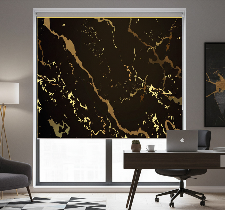 Rolo zavesa za pisarno črna zlata marmorna tekstura
