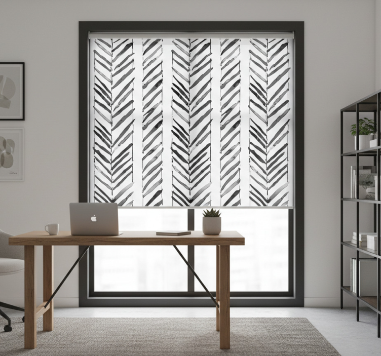 Rolo zavesa za pisarno črno-bela geometrijska zasnova