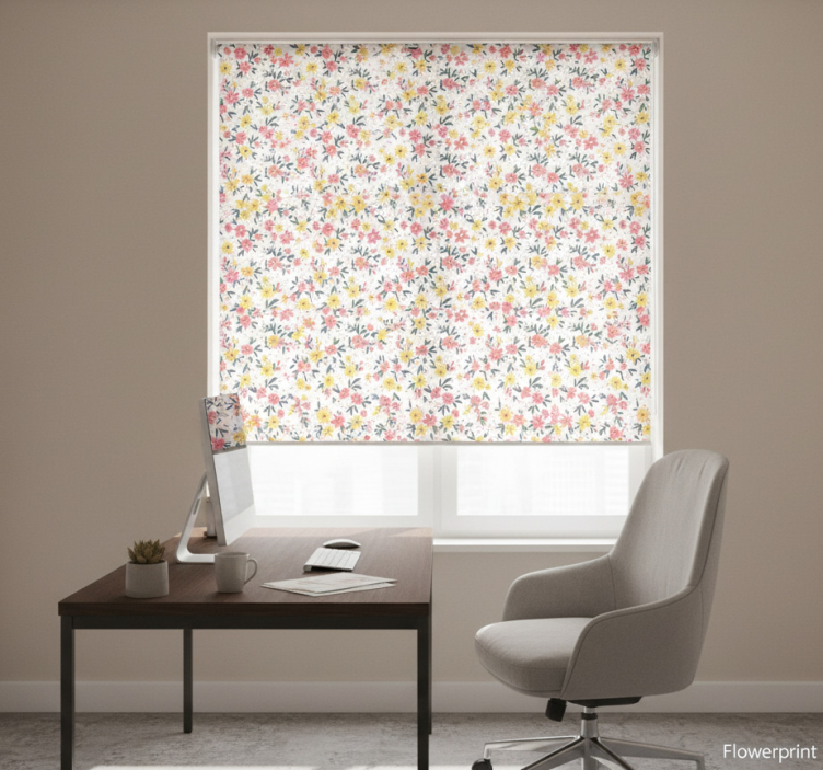 Rolo zavesa za pisarno cvetlični vzorec ifuru bela