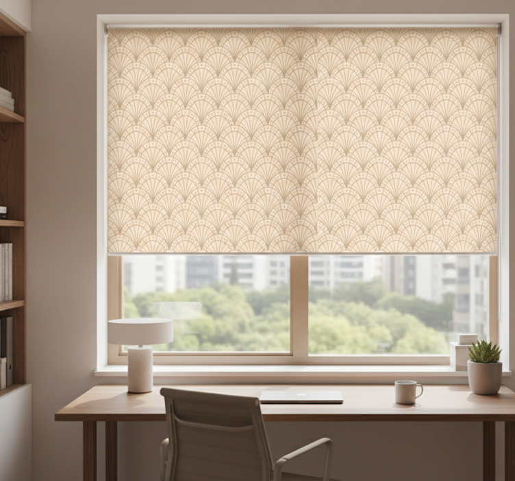 Rolo zavesa za pisarno elegantni motiv ventilatorja