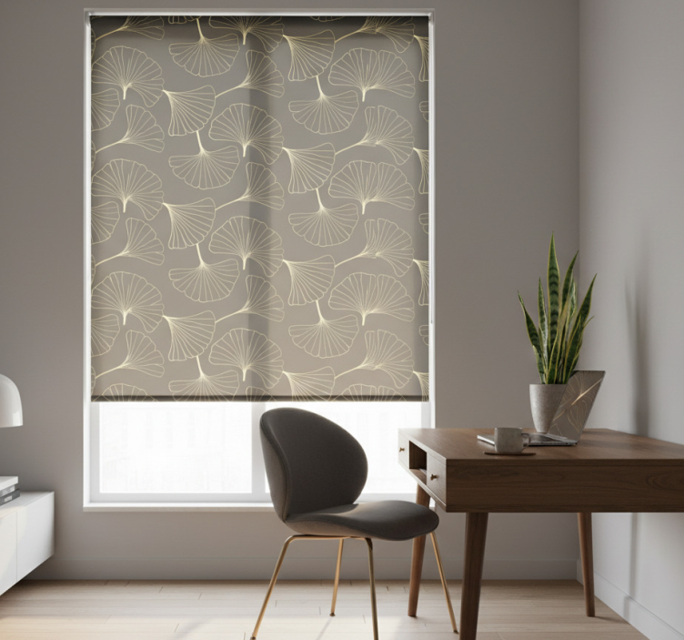 Rolo zavesa za pisarno ginkgo listi oglje zlato