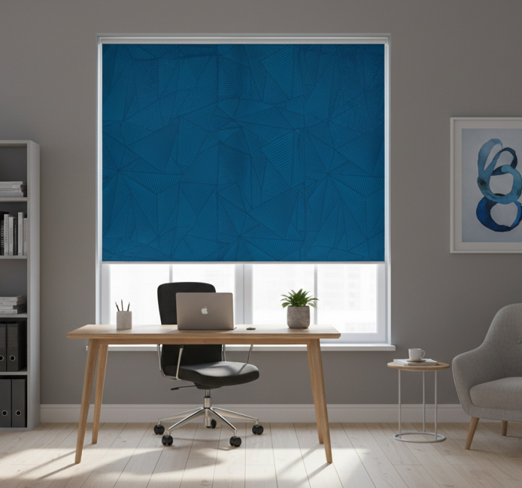 Rolo zavesa za pisarno modri geometrijski vzorec