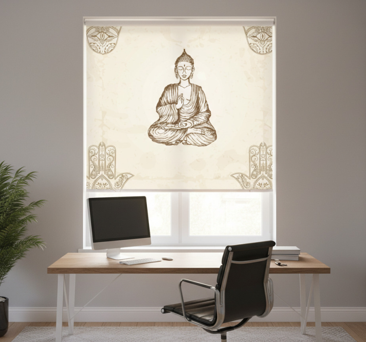 Rolo zavesa za pisarno simbol buddhe in hamsa roka
