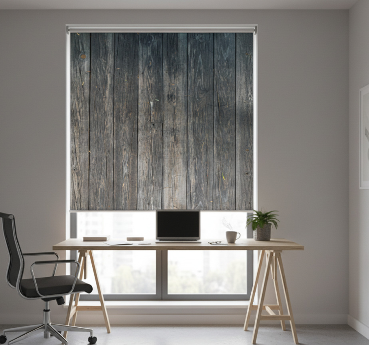 Rolo zavesa za pisarno sivo razbito rustikalno vzorje