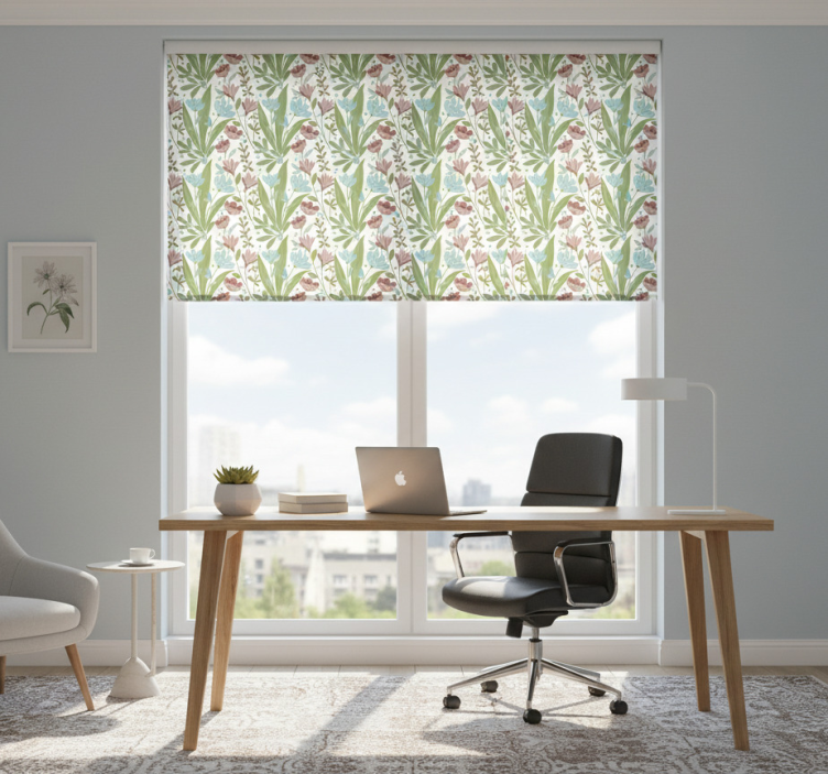 Rolo zavesa za pisarno v stilu cvetličnega granny chic