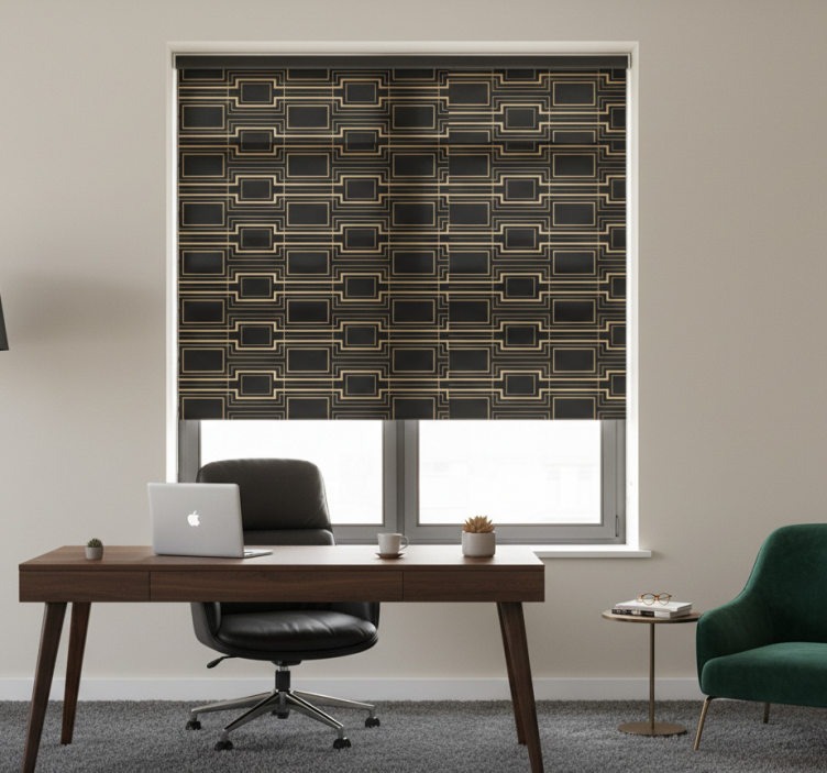 Rolo zavesa za pisarno z vzorcem zlatih okvirjev