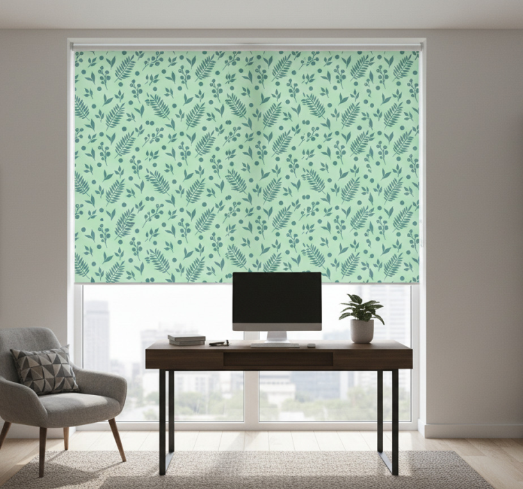 Rolo zavesa za pisarno zelene liste na zeleni