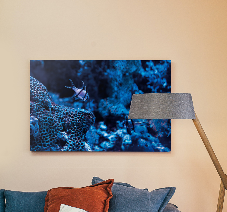 Odkrijte čarobnost podvodnega sveta z našim Coral reef fish slikanje na platnu z morskim motivom. Ta edinstvena umetniška slika prikazuje čudovite korale, živahne ribe in pomirjujoče modre odtenke morja, ki skupaj ustvarjajo nepozaben morski motiv. Vsak pogled na to sliko vas popelje v globine oceana, kjer se srečate z bogatstvom morskega življenja.