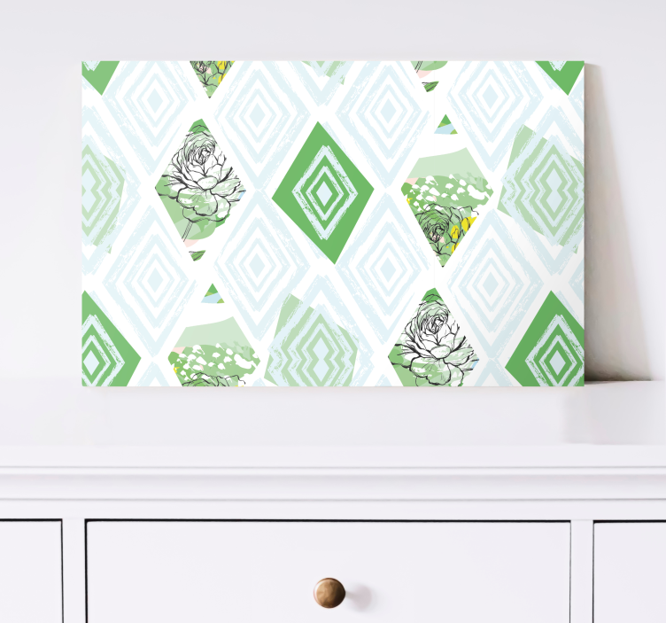 Uživajte v čarobnosti narave s Geometric succulent pattern slikarsko platno z rastlinami, ki prinaša osvežujoč in sodoben dizajn v vašo notranjost. Ta umetniško oblikovana platna združujejo cvetove, rože in geometrijske oblike, ki se prepletajo v čudovite diamantne in rombne vzorce. Zeleni toni rastlin in povzetki sočnih rastlin prinašajo pridih narave in harmonije, kar ustvarja edinstven in privlačen ambient v vsakem prostoru.
