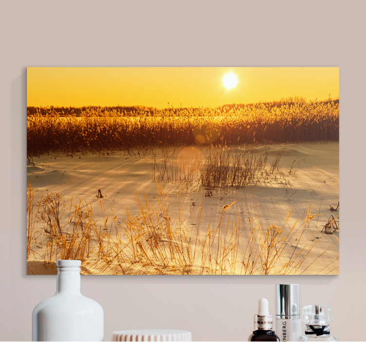 Uživajte v čarobnosti narave z Golden sunrise landscape platno slika zemljevidov, ki prinaša edinstven dizajn, ki vas popelje v svet sončnih zahodov nad prostranimi polji. Ta slikovita umetnostni kos združuje nežno pampassgrass, široka polja in svetle odseve sonca, ki se odražajo na travi. Vsak pogled na to platno vas bo popeljal v mirno, vetrovno pokrajino, ki jo obkroža naravna lepota.