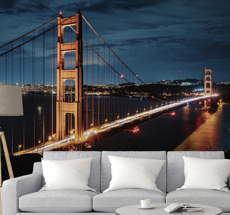 Odkrijte čarobnost nočnega San Francisca z našimi Golden gate bridge night fototapete mest in držav. Ta čudovit dizajn prikazuje mogočni Golden Gate most, obdan z mestnimi lučmi, ki osvetljujejo nočni prizor in ustvarjajo edinstveno vzdušje v vašem prostoru. Idealno za vsak dom ali pisarno, ta fototapeta prinaša delček mestnega življenja naravnost k vam.