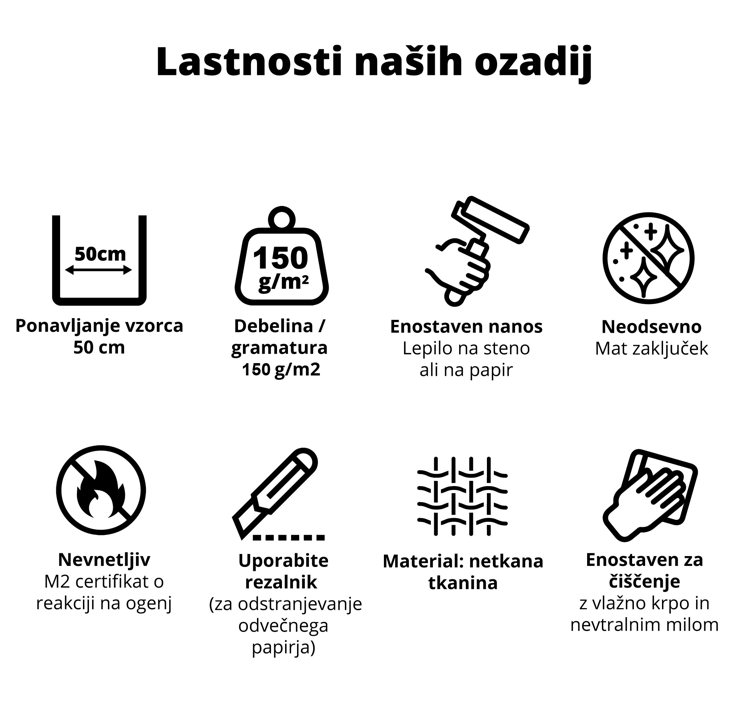 * Zaradi procesa sušenja lepila, ni priporočljivo uporabljati tapeta v sobah z nizko vlažnostjo in pri temperaturah pod 10 ° C. Optimalna Prostor med procesom nanašanja in sušenja temperatura med 18-21ºC