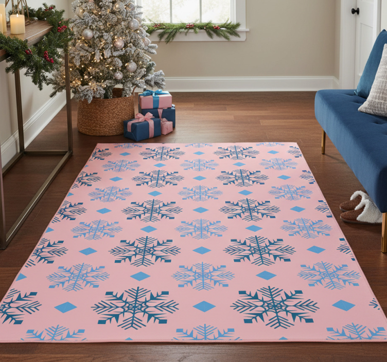 Božična vinilna preproga v vzorcu roza in modrih snežink