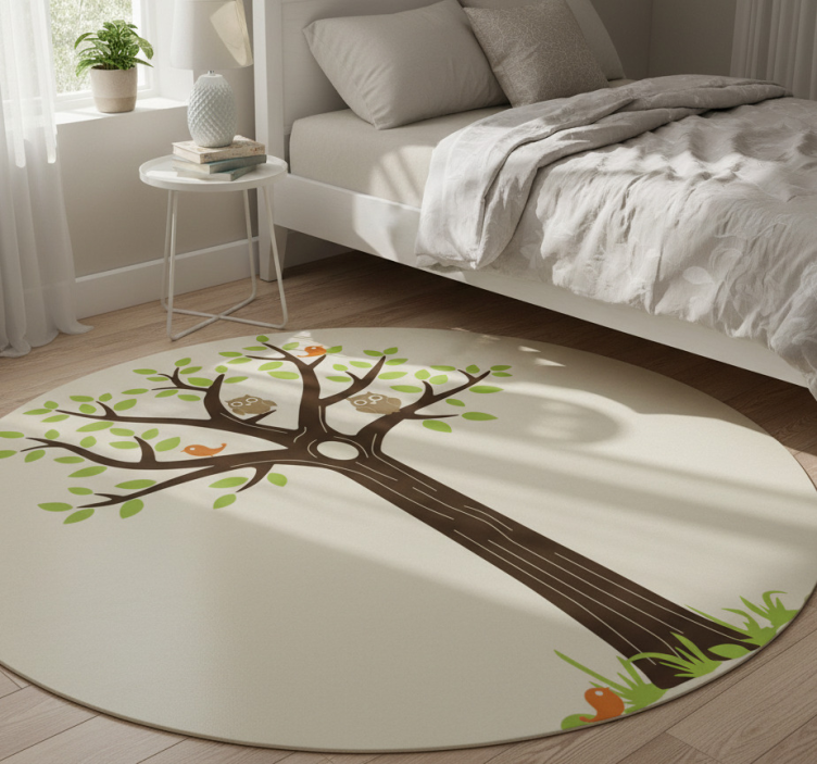 Cvetlična vinilna preproga s sovami in drevesi