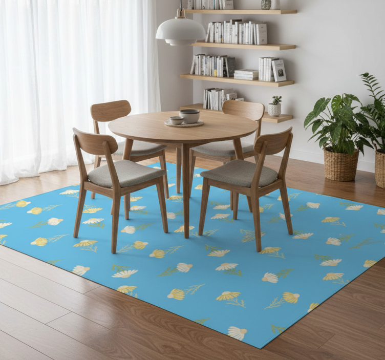 Cvetlična vinilna preproga modra podlaga z marjeticami