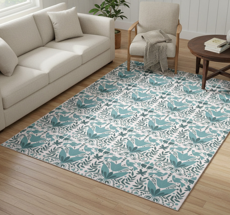 Cvetlična vinilna preproga modri ljudski vzorec ptic