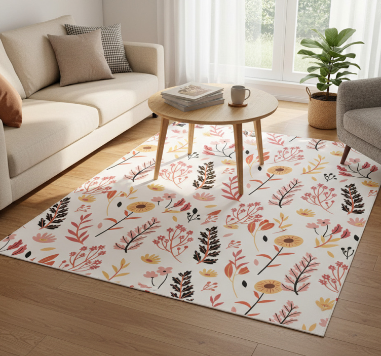 Cvetlična vinilna preproga pisane rože na belem ozadju