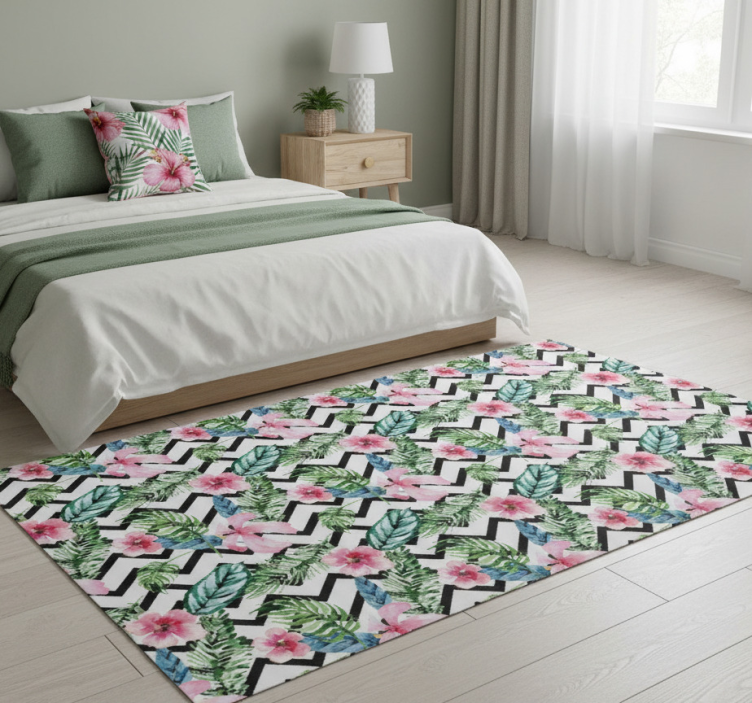Cvetlična vinilna preproga zelena tropska cik-cak