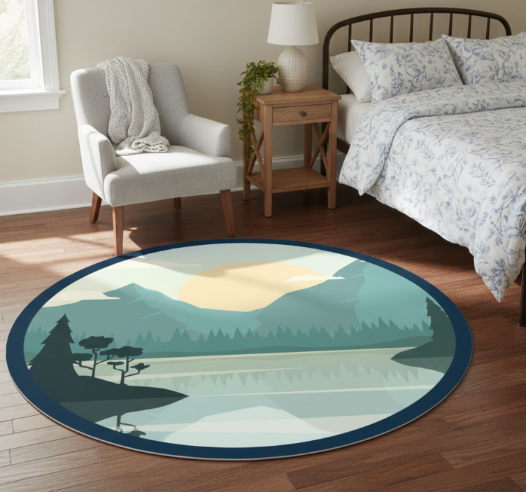 Cvetlična vinilna preproga silhueta gore z jezerom