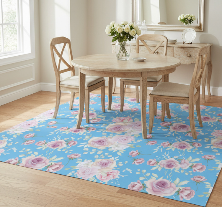 Cvetlična vinilna preproga vrtnice na modrem ozadju