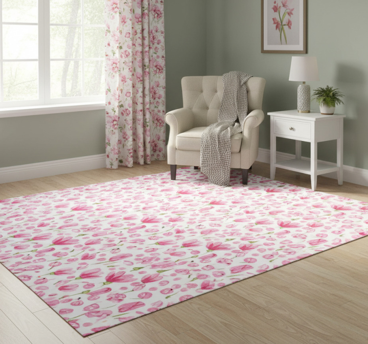 Cvetlična vinilna preproga roza akvarelni cvetovi